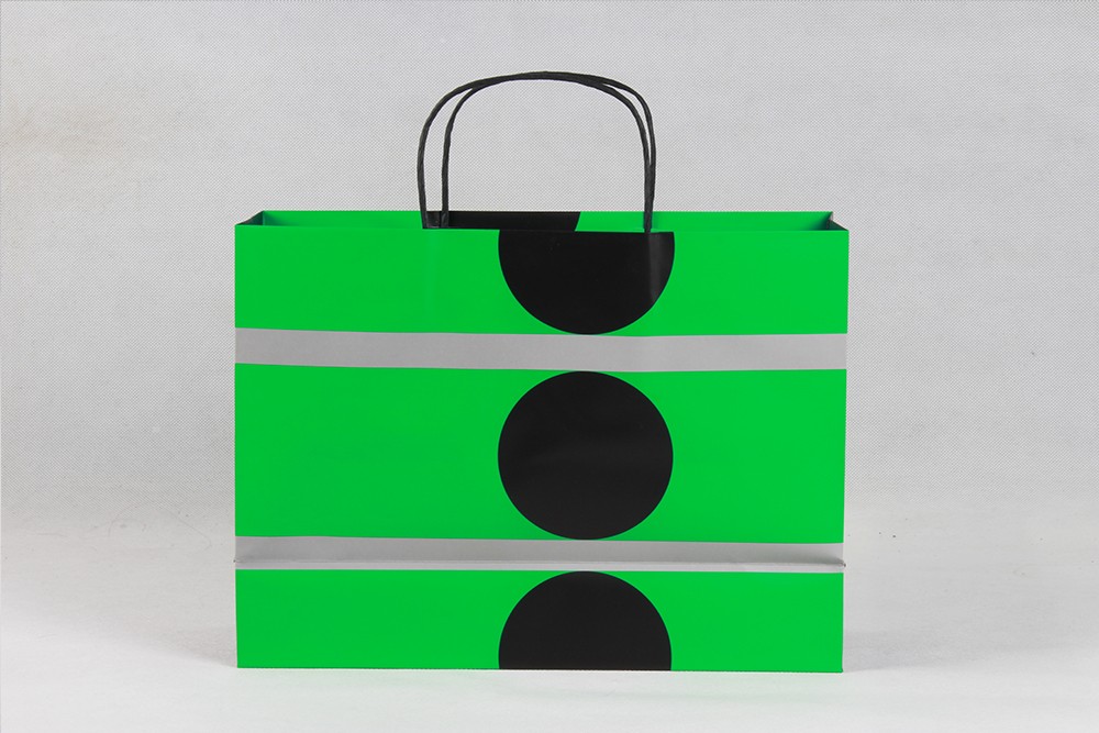 亮綠黑圓高檔化妝品銅版紙袋定制