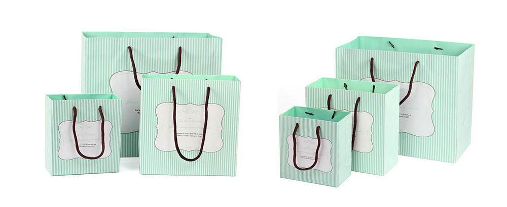 抹茶白條紋精致化妝品白卡紙袋定制