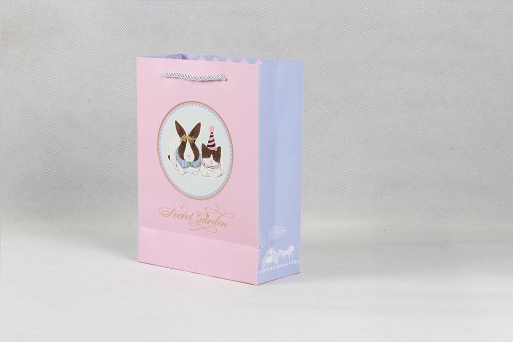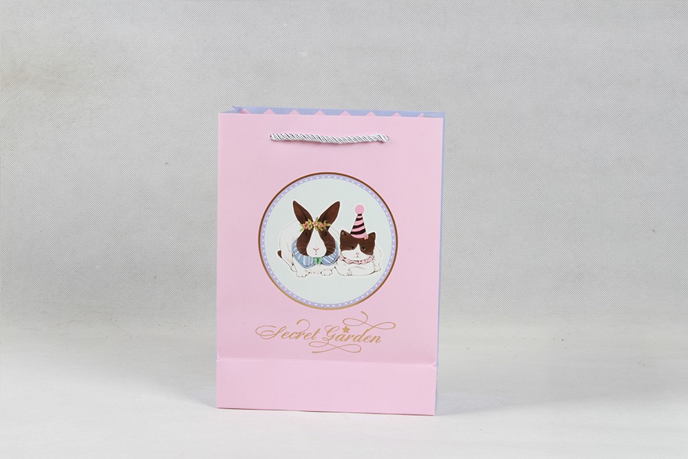 粉色卡通禮品白卡紙袋