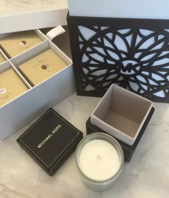這款Michael Kors的月餅套裝,是特別請(qǐng)了臺(tái)灣的東方文華酒店的知名粵菜餐廳「雅閣」制作,制作成品非常高昂。從袋子拿出來(lái)的是一個(gè)非常漂亮的木雕盒子,內(nèi)部全面展開(kāi)后,有著華麗的雙層設(shè)計(jì),并裝有六顆以“月亮陰晴圓缺”為主題的月餅,里面還有一個(gè)皮制小盒子,非常精美。抽掉月餅包裝的內(nèi)層紙盒,留下漂亮的雕花木盒子后再點(diǎn)上蠟燭,是一盞燈籠,點(diǎn)上蠟燭,鏤空的雕花投影到墻上,像星星閃爍著,盡顯精致與浪漫。